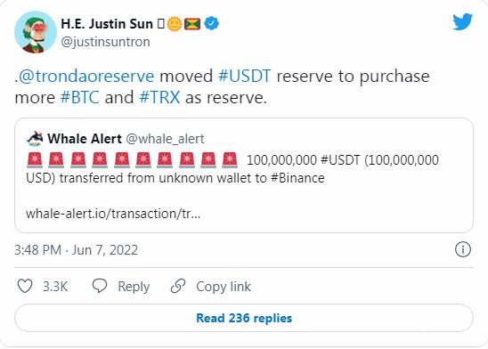 UST 所做的非常相似。在波场创始人孙宇晨指出,波场 DAO 储备使用其储备中的 1 亿美元购买更多 TRX 和 BTC 储备后,批评愈演愈烈。