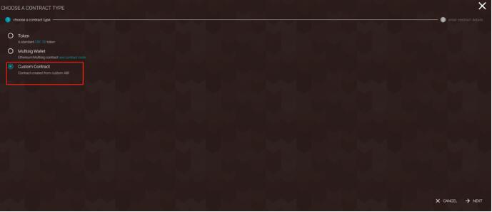 9. 选择Custom Contract,然后点击右下角的NEXT。
