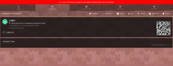 4. 进入钱包页面以后,当前钱包仍为空钱包,您需要手动创建一个新账户。注:在Parity中执行每部操作之前,均需要首先点击页面右下角的“Accept”按钮。