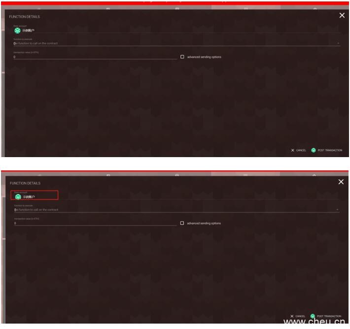 13. 进入燃烧界面后,首先选择进行燃烧GBC操作的账户,然后在function to execute下拉列表中选择transfer,在 to address一栏里输入燃烧地址:(0x58af44aeddf2100a9d0257cbaa670cd3b32b7b3e),在amount一栏中输入所需燃烧的GBC数量(必须为1000的整数倍)。例如,您想燃烧1000个GBC获得一个股份,需输入100000000000,即1000后面加八个零。输入完成后,点击右下角的POST TRANSACTION,然后在跳转页面中输入账户密码,即可完成燃烧GBC操作。