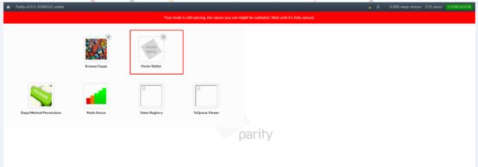 3. 安装完成后,系统会自动打开网页端parity钱包。选择Parity Wallet,进入钱包页面。