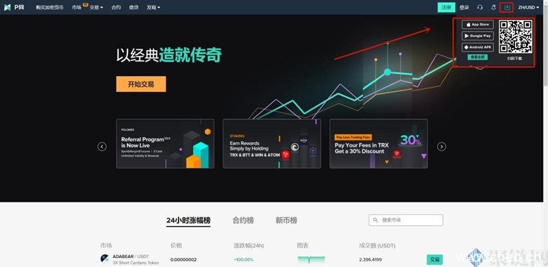 2、右上方有下载标志,用户可以选择重新下载一遍P网交易所