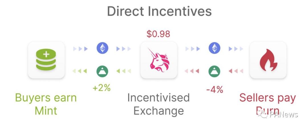 当价格低于挂钩价格时,卖出的用户将有4%的额外损失,买入的用户将额外获得2%的奖励。