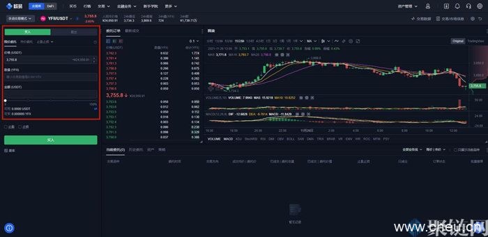 3、以YFII\USDT交易对为例,点击交易对后会出现交易界面,投资者就可以根据需求购买和交易YFII币