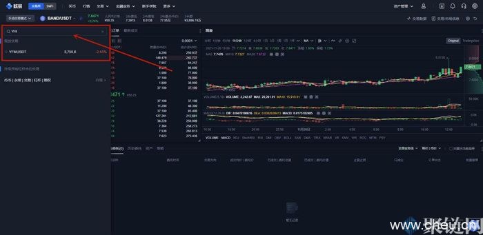 2、在交易对中输入YFII,就会出现欧易交易所支持的相关交易对