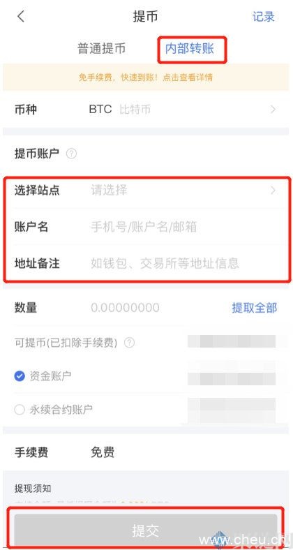 4、 其中内部转账是指将币转至欧易OKEx其他账户或欧易OKEx开放交易平台账户,转账实时且无需手续费用。