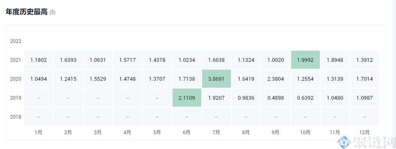 2020年7月12日AMPL币出现历史最高价为4.0258美元,2021年10月AMPL币出现最高价为1.9992美元,2019年6月AMPL币出现最高价为2.1109美元。