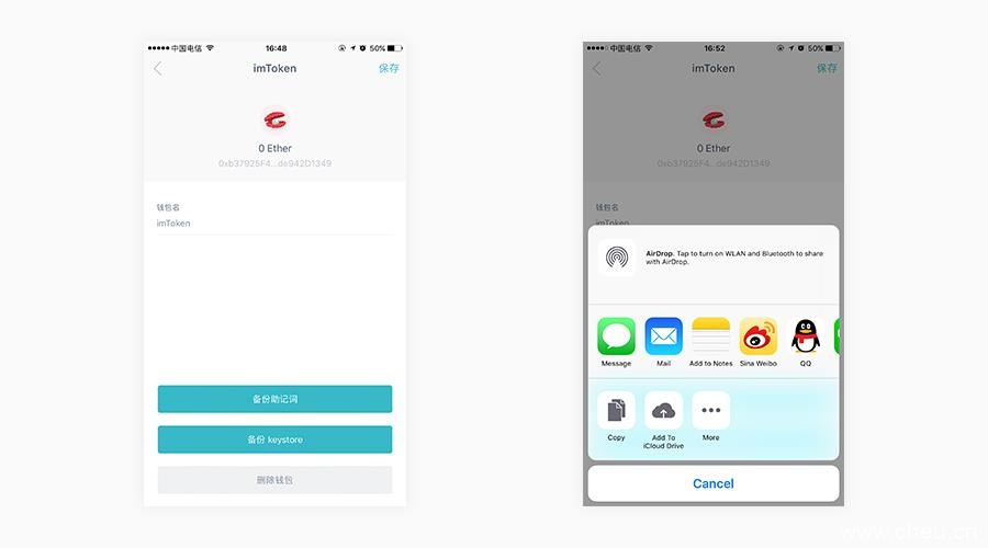 imToken2.0如何备份钱包(imToken钱包备份教程) 币圈之家 2023年2月11日 22:39 阅读(195) 1. 导出 keystore 点击 “我” 中管理钱包 ——> 选择钱包。 导出 keystore ——> … 1. 导出 keystore 点击 “我” 中管理钱包 ——> 选择钱包。 导出 keystore ——> 输入钱包密码 ——> 选择一个记录 keystore 的工具并发送,也可以点击 copy 按钮,将 keystore 复制下来。 2. 导出助记词 点击 “我” 中管理钱包 ——> 选择你自己创建的 HD 钱包(分层确定性钱包,使用 生成的即是这种类型的钱包)。 导出助记词 ——> 输入钱包密码。 备份助记词(按顺序记录)并点击 “下一步” ——> 按顺序输入你刚才备份的助记词用以二次确认 ——> 确认。 注意:助记词移除之前一定要确保已经备份,移除之后,当前钱包已经没有助记词,但是用户可以通过导入助记词功能重新导入该钱包! 免责声明:文章内容不代表本站立场,本站不对其内容的真实性、完整性、准确性给予任何担保、暗示和承诺,仅供读者参考,文章版权归原作者所有。如本文内容影响到您的合法权益(内容、图片等),请及时联系本站,我们会及时删除处理。 标签:288 zb