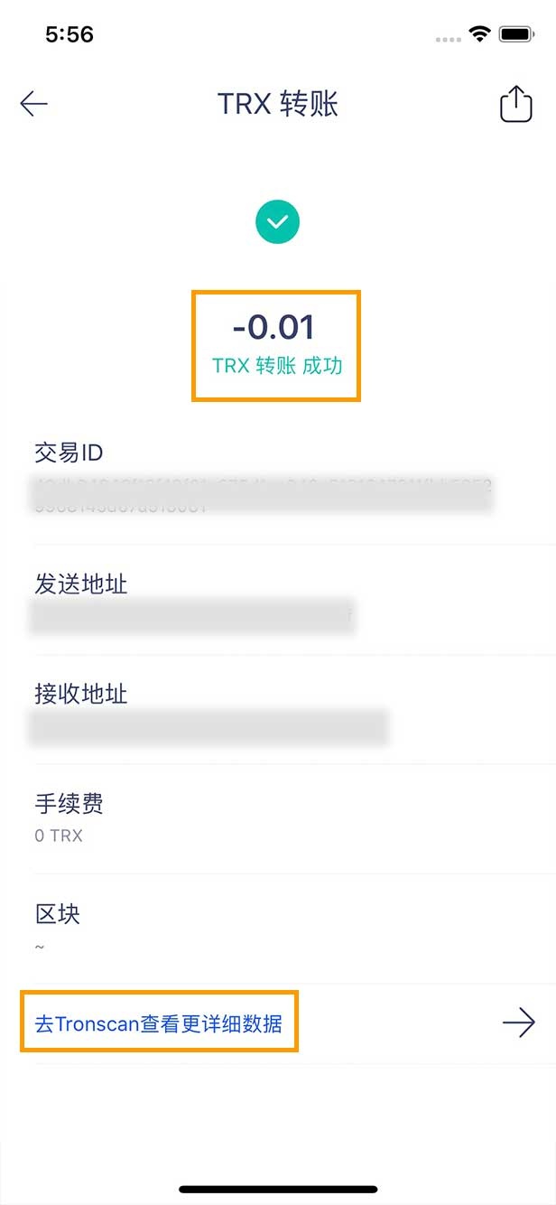 6、点击下方的 “去 Tronscan 查看更详细数据” 可以了解更多转账链上信息。