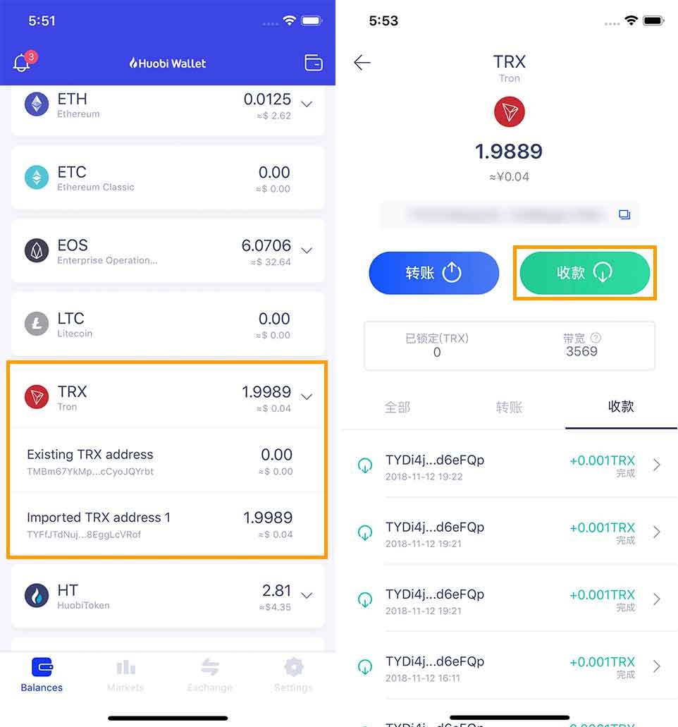 火币钱包如何进行TRX波场币的转账及收款(操作流程如下)