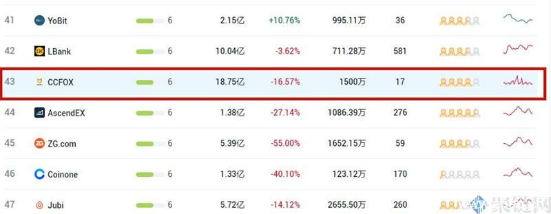 截止到目前CCFOX交易所在全球数字货币交易平台中排在第43名,总资产实力达到了1500万美元。