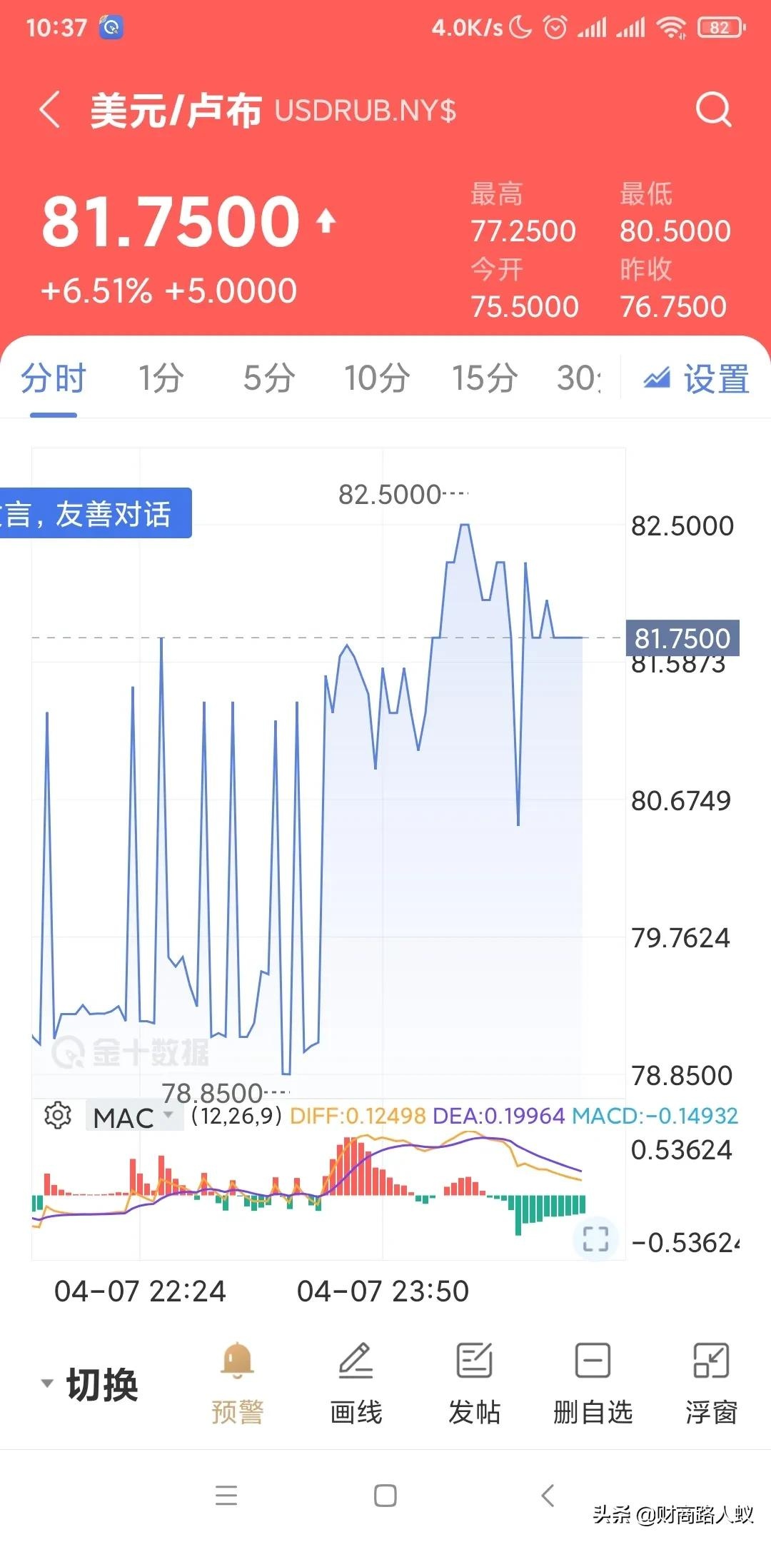 卢布反弹,石油价格回调意味着能源通胀的回调,但如果国际局势混乱持续,全球通胀率会持续上升,大多数经济的经济发展会停滞,甚至衰退,