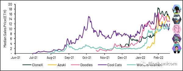 CryptoPunks 和 Bored Ape Yacht Club(无聊猿猴)日益增长的关注(和价值)。