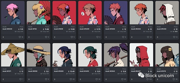 潜在买家还可以评估上市资产之间的价格列表,类似于加密货币的订单簿。下面,Azuki 的底价为 11.5 ETH,但只需购买 12 次即可达到 13.0