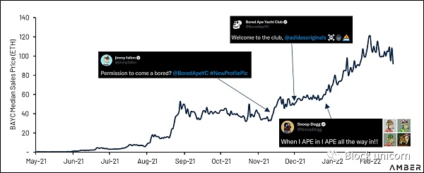 作为个人资料图片。而且,就像在物理世界中一样,这些化身产生社会属性,例如状态信号、封闭社区、社会等级和其他相关行为,所有权也超越了原始文件本身。例如,无聊猿游艇俱乐部的成员拥有猿猴的知识产权,允许他们使用猿来推出啤酒品牌、漫画,甚至虚拟乐队。
