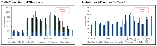 LooksRare 的交易量以有限的有机活动为平台刷交易量