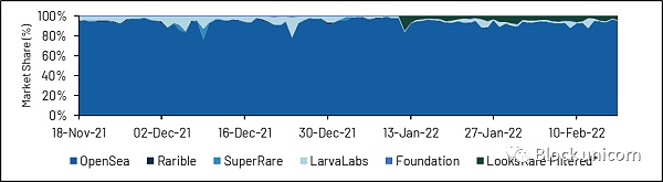 的市场份额。然而,许多新平台已经进入市场,针对特定的子行业(例如,生成艺术)、不同的用例(例如,NFT 交换),或者仅仅是 OpenSea