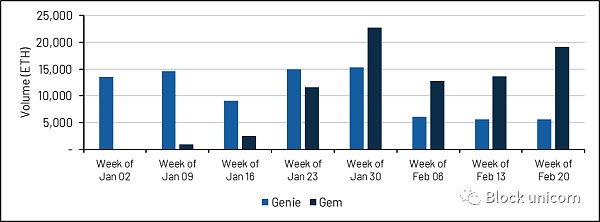 目前有两个主要的 NFT 聚合器:Genie和Gem。Genie 于去年 7 月首次推出,允许用户在 OpenSea 和 Rarible