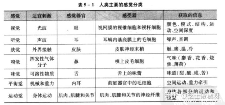 人的感觉包括:视觉、听觉、嗅觉、味觉、皮肤觉(触觉、温觉、冷觉、痛觉)、运动觉、平衡觉等。