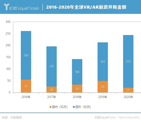 《报告》显示,2020年全球VR/AR产业资本热度回归,下半年产业融资并购规模逆势增长,全年融资并购金额和数量分别同比增长15%和11%。