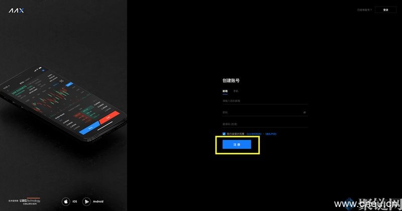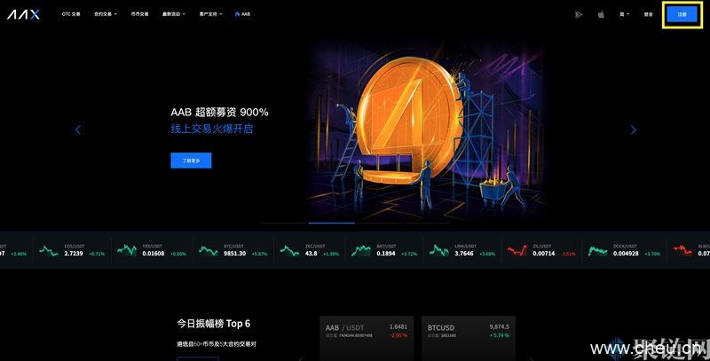 一、进入官网(https://www.aax.com/),点击右上角注册按钮