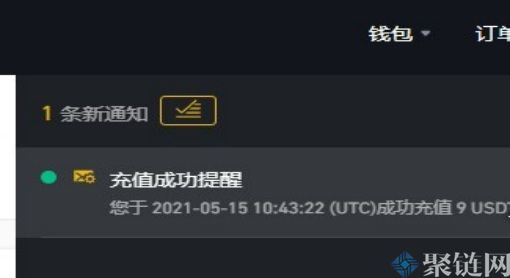 4、约两分钟后,币安通知提示充值(转账)成功: