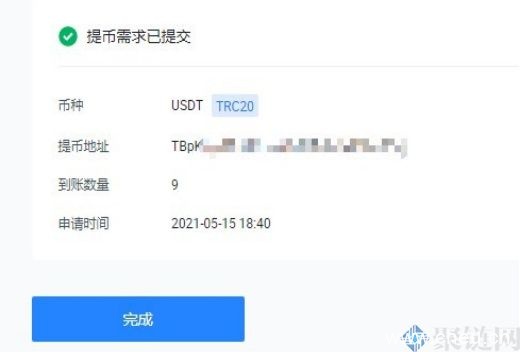 点击“提币”,“提币信息确认”显示到账数量为9,扣除了1USDT手续费: