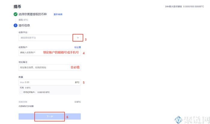 3. 填写提现信息,输入提现地址和数量,点击下一步即可。