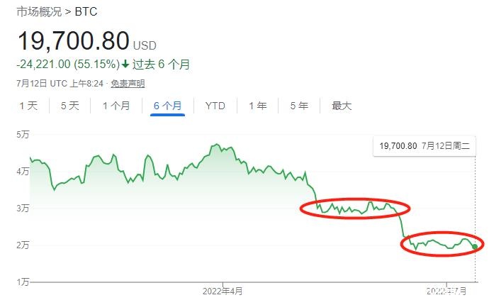 受美元持续飙涨影响,比特币价格重回2万美元以下。