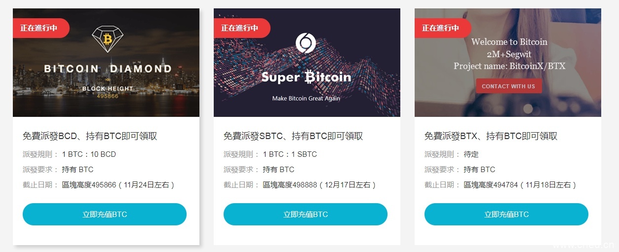 第三:12月23日,BTP(比特币白金)在区块高度5万分叉,总量2100万,1:1兑换,自称无预挖,团队未知。