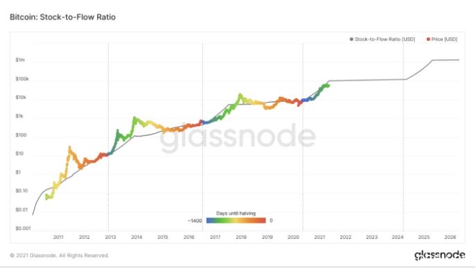 在去年减半之前,比特币社区和其他广泛的金融系统中的众人都在争论减半是否会在价格上体现,因为这一事件在未来会是众所周知的。虽然我不会深入讨论我对这场辩论的个人看法,但由于比特币价格的细微差别和所有外生变量和因素的影响,比特币的价格似乎正在遵循着2019年3月由匿名推特账户Plan B首次提出的S2F模型,这一点上极为有趣。