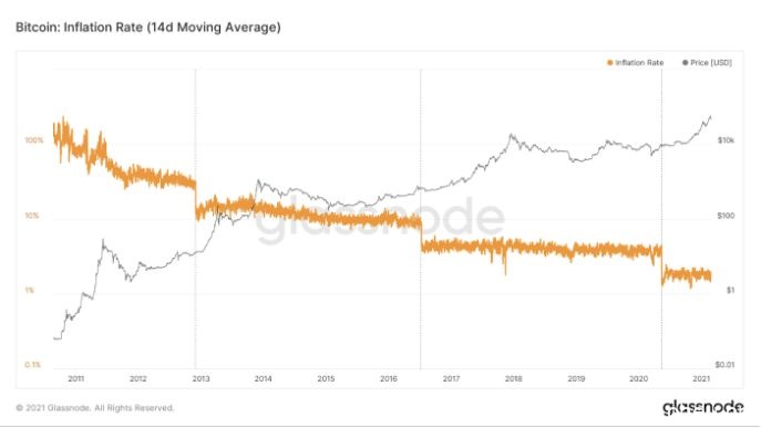 在2020年3月初的全球流动性危机期间,所有资产类别都出现了创纪录的暴跌,此后更是迎来了前所未有的货币和财政刺激措施。当时,比特币在2020年5月11日减半时的价格为8000美元左右。全球的投资者开始意识到,他们需要寻求庇护,并使自己免受急剧的货币扩张的影响。与此形成强烈对比的是,比特币经历了一次量化紧缩–即无论任何政策制定者的选择,新比特币的供应发行被削减了50%。