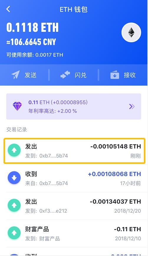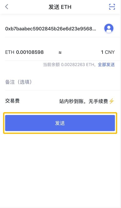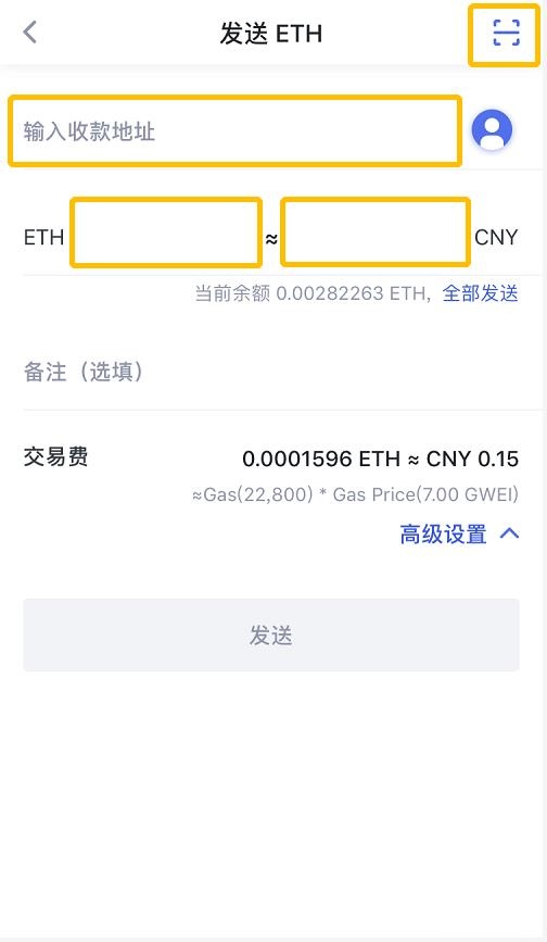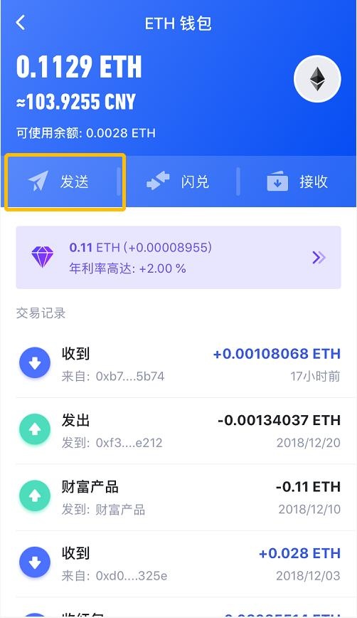 1. (以云端钱包ETH为例)进入云端钱包——点击进入ETH币种页面——点击【发送】;