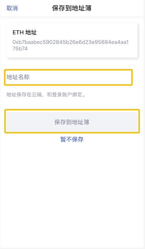 7. 您也可以将此地址保存到地址簿,起一个名字,方便以后转账哦!