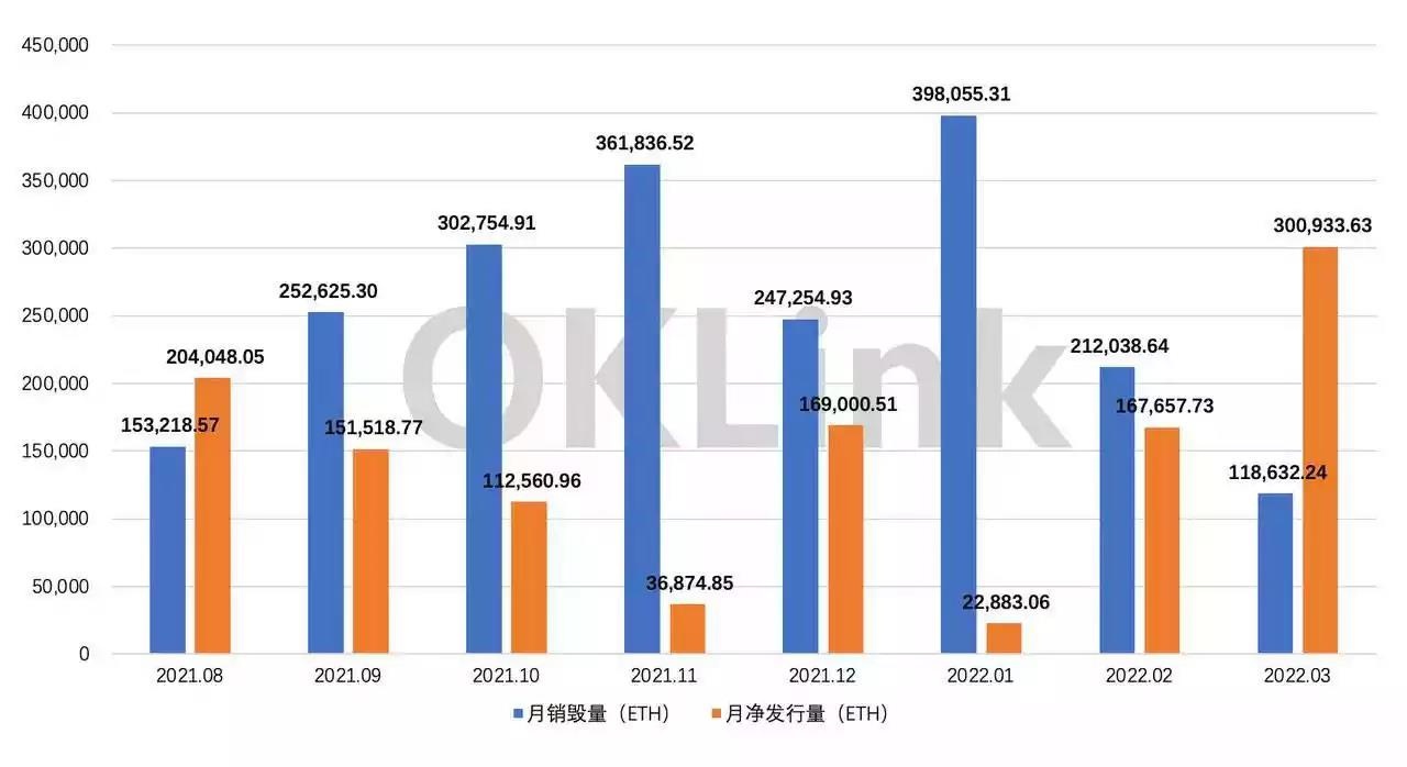 LIANG Chen:那我重点说一下销毁情况吧,自去年 8 月 EIP1559 上线之后,以太坊相当于增加了通缩机制,我们 OKLink