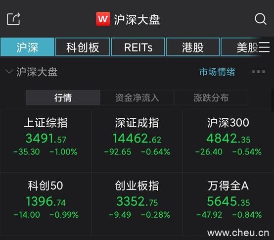 截至11月5日收盘,上证指数跌1.00%报收于3491.57点;深成指跌0.64%报收于14462.62点;创业板指跌0.28%报收于3352.75点,万得全A总成交1.15万亿。