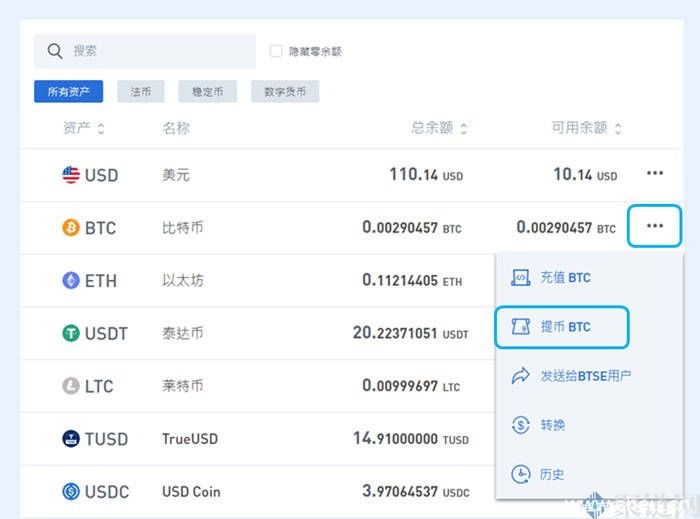 选择您欲提币的币别 > 点击“三点”( … ) >“提币 (币别)”