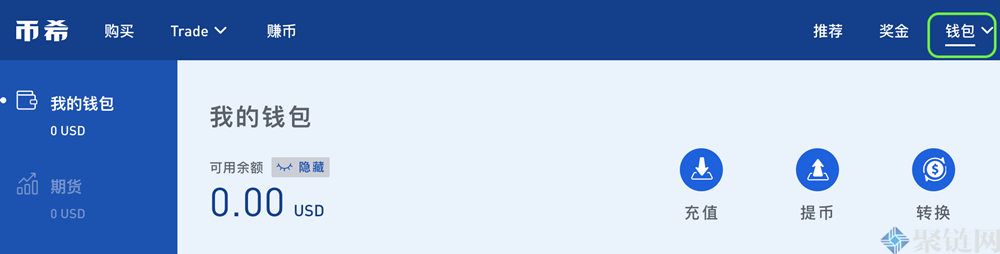 首次打开BTSE钱包时,系统会提示您创建一个钱包地址。请点击“创建钱包”以生成您个人专属的钱包地址