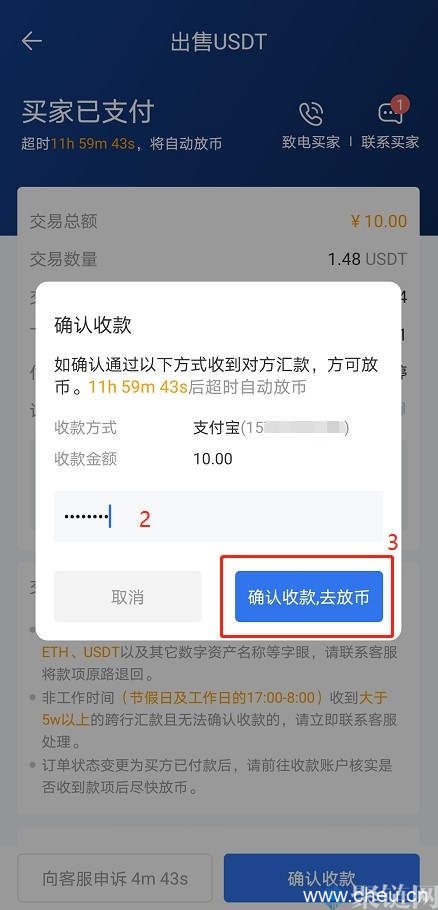 1. 收到付款后请尽快放币,超过12小时未确认,系统会自动放币给买家。