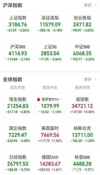 A股三大股指集体低开,沪指跌0.37%,深证成指跌0.69%,创业板指跌1.31%。截至发稿,创业板指下挫跌逾3%,沪指跌2%,深成指跌2.23%。锂电池、半导体芯片、房地产等板块指数跌幅居前,宁德时代(300750)跌超8%,两市下跌个股超3500只。