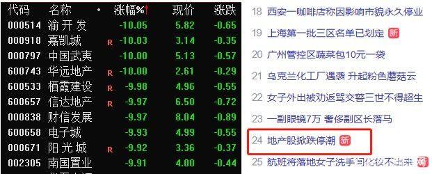 地产股掀跌停潮(主力资金逃离多只个股)