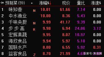 4月11日,预制菜概念股震荡走强、味知香、中水渔业(000798)、千味央厨等涨停。