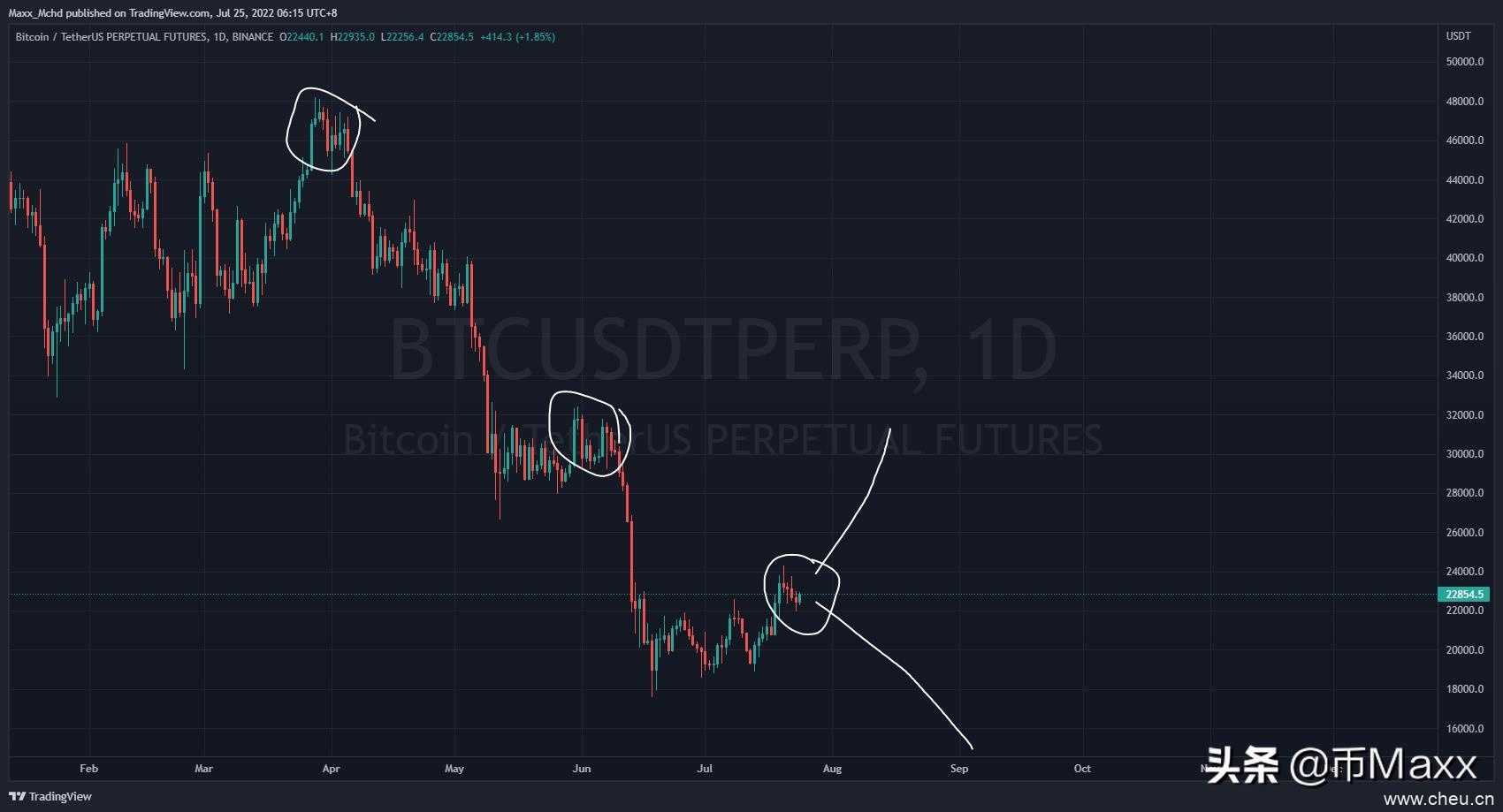 如果BTC价格能够有效站上23750,则中线反弹很有可能继续,看28500-30000方向;如果其无法突破这一位置,那么要更加重视其一泻千里的可能性。