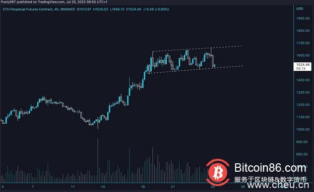 但短期内可能会为 ETH 价格提供一些上行空间。例如,分析师 PostyXBT预计Ether 将根据代币最近在上升通道模式内的波动经历临时上行回撤,如下所示。