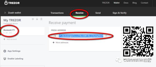 -> 发现货币类型由默认的BTC变成了ZEC,选择Receive(收币)选项卡,会显示ZEC的钱包地址
