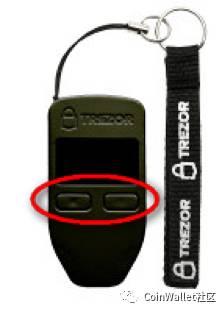 trezor硬件钱包的外观特别简约,除了显示屏之外只有两个按钮。两个按钮的功能是跟随显示屏的显示动态变化。下面开始配置: