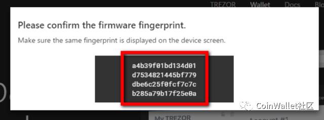 4.固件更新完成之后,页面会提示用户确认trezor设备的固件指纹。确认之后页面会提示“update was successful(上传成功)”表示固件安装完成
