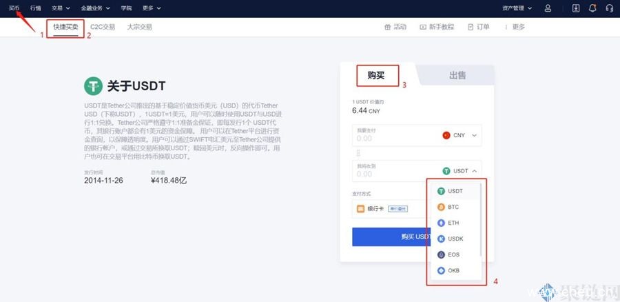 1. 打开欧易OKX官网(http://www.yuanhehe.com/yhh/ios.html),点击页面左上角买币,选择快捷买卖,点击购买,选择要购买的币种,例如USDT。