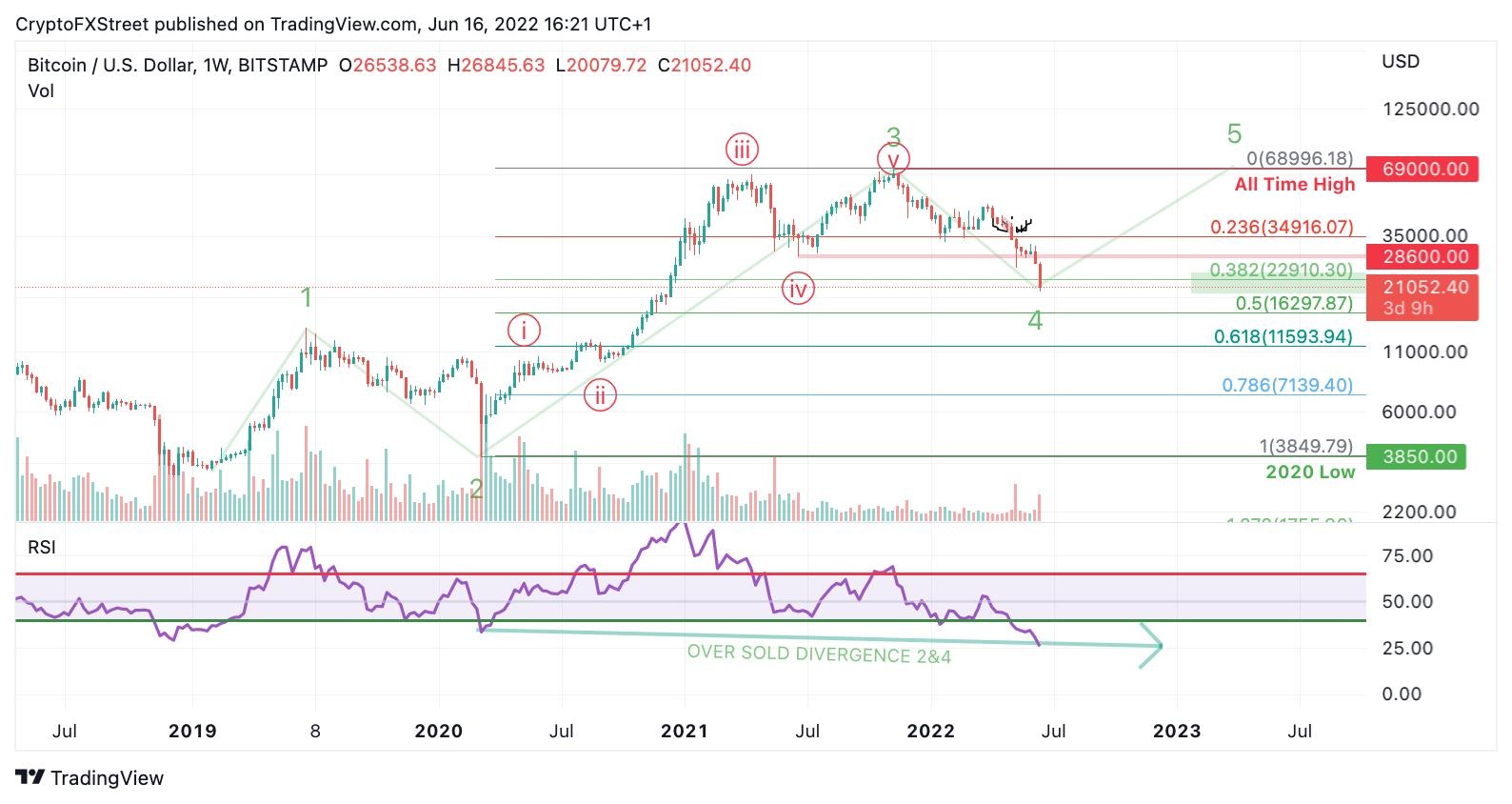 在相对强度指数上可以看到另一个类似教科书的汇合点。请注意第 2 波和第 4 波之间的分歧。该指标表明,当前 20,910 美元的 BTC 价格比