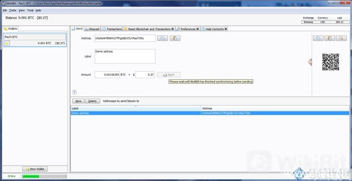 这样就成功的发送(或接收)了一些比特币。和从交易平台购买一样,它同样需要一定的时间来完成转账,等待块环链的生效。如果你想要别人给你发送比特币,你可以使用钱包的“请求功能”,或者直接给发送者你的钱包地址。